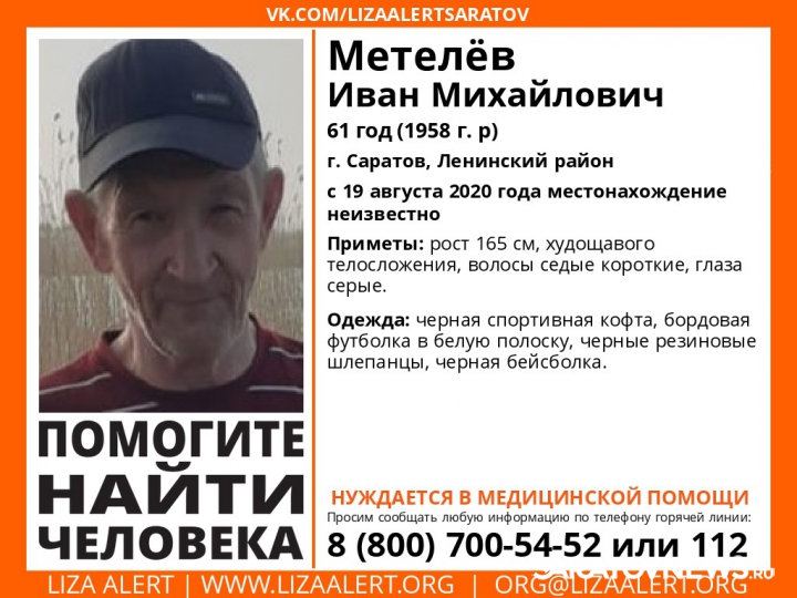 Вчера, 21 августа, появилась информация о пропаже пожилого мужчины в Ленинском районе Саратова. Об этом сообщили волонтеры поискового отряда «Лиза Алерт» в своей группе в социальной сети.