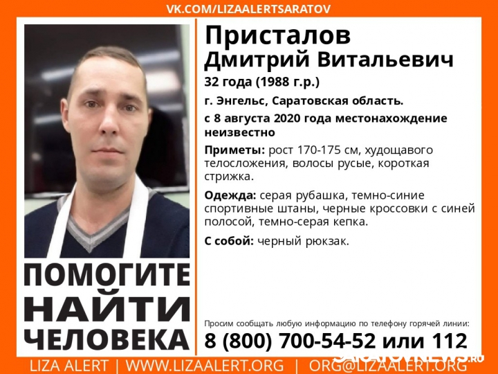 32-летний Дмитрий Присталов, проживающий в Энгельсе, смог вернуться домой. Напомним, мужчина пропал 8 августа, а к волонтерам «Лиза Алерт» по этому поводу обратились 15 августа.