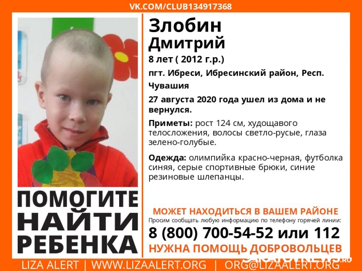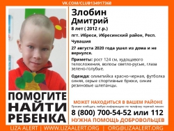 Пропал восьмилетний Дмитрий Злобин. Малыш проживает в поселке Ибреси, Ибресинского района в республике Чувашия. Вчера, 27 августа 2020 года ушел из дома и не вернулся.