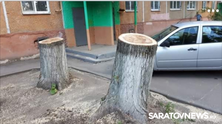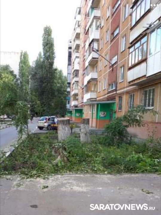 В сообществе «САРАТОВ | Строительство & Архитектура» появились фотографии спиленных деревьев в одном из дворов Ленинского района.