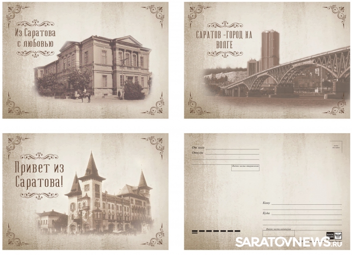 Кроме того, к юбилею Саратова были изготовлены и почтовые открытки, на которых изображены символы города – художественный музей имени А.Н. Радищева, консерватория им. Л.В. Собинова и мост через Волгу, который на момент открытия, в 1965 году, был самым протяженным по длине мостом в Европе. Макет открыток был разработан сотрудниками МБУ «Городской центр им. П.А. Столыпина».