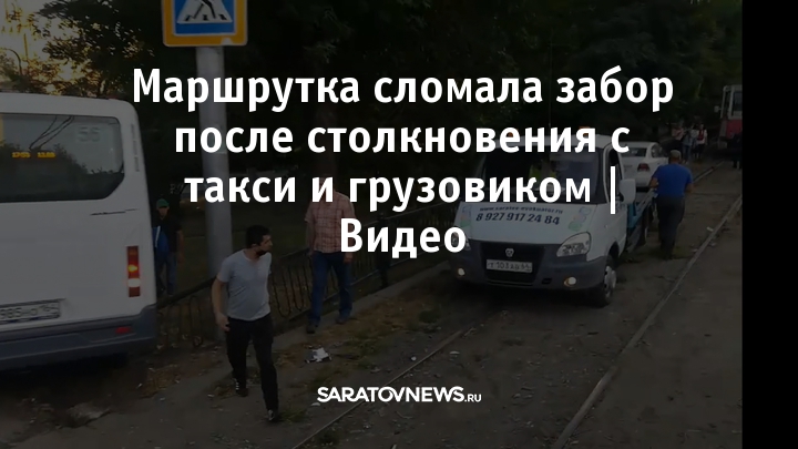 В сообществе «Саратов онлайн» пользователь Эльдар Дагамиров опубликовал видео, на котором запечатлены участники аварии. На записи видно, что такси и грузовик стоят на трамвайных путях, а маршрутку отбросило за ограждение сквера.