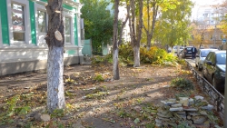 В центре Саратова произошел очередной акт вандализма против зеленых насаждений. По адресу: ул. Т.Шевченко, 2 варварски опилены взрослые каштаны, много лет украшавшие улицу. Теперь здание Облпотребсоюза, которое в настоящее время ремонтируется и красится в ядовито-зеленый цвет, видно издалека. Вероятно, именно с этой целью владелец четырехэтажного здания и решил «улучшить» внешний вид деревьев.