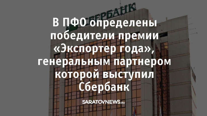 В Приволжском федеральном округе (ПФО) определены победители Всероссийской премии в области международной кооперации и экспорта «Экспортер года», организованной АО «Российский экспортный центр». В этом году генеральным партнером премии выступил Сбербанк.