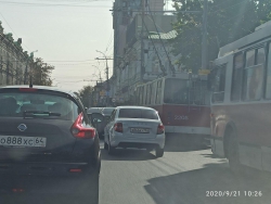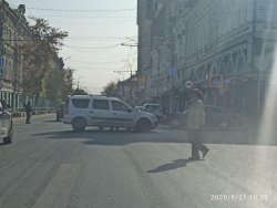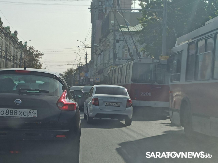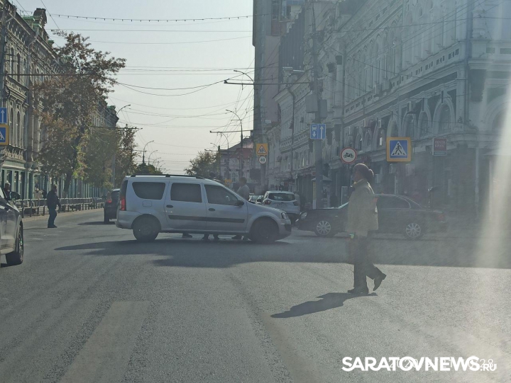 Сегодня, 21 сентября, у здания правительства Саратовской области образовалась пробка. Причиной затора стала тройная авария.