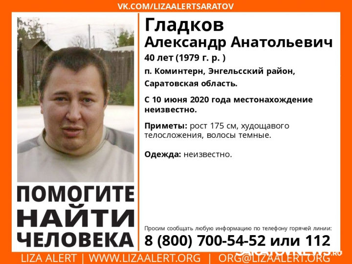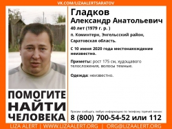 Пропал 40-летний Александр Гладков, проживающий в поселке Коминтерн. С 10 июня его местонахождение неизвестно. По имеющимся данным, рост пропавшего составляет 175 сантиметров, он худощавого телосложения и имеет темные волосы. Во что он был одет в день исчезновения ― неизвестно.