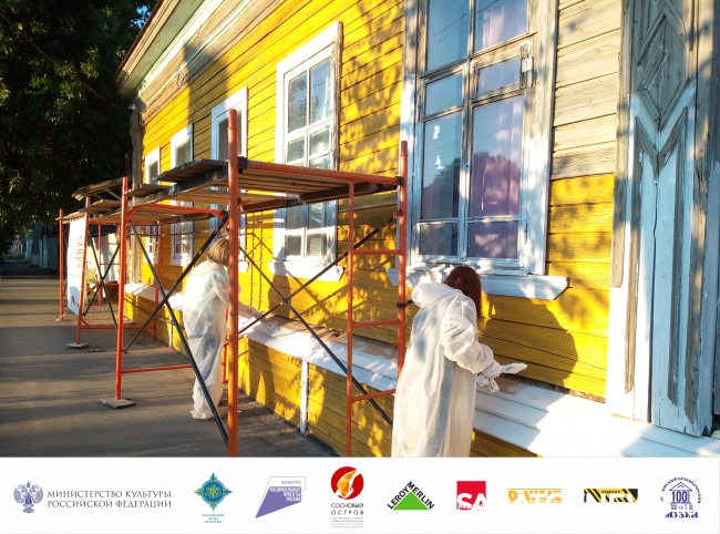 Волонтеры полностью обновили фасад дома и подготовили для него уникальные еревянные украшения на базе столярной мастерской Фонда «Сосновый остров».