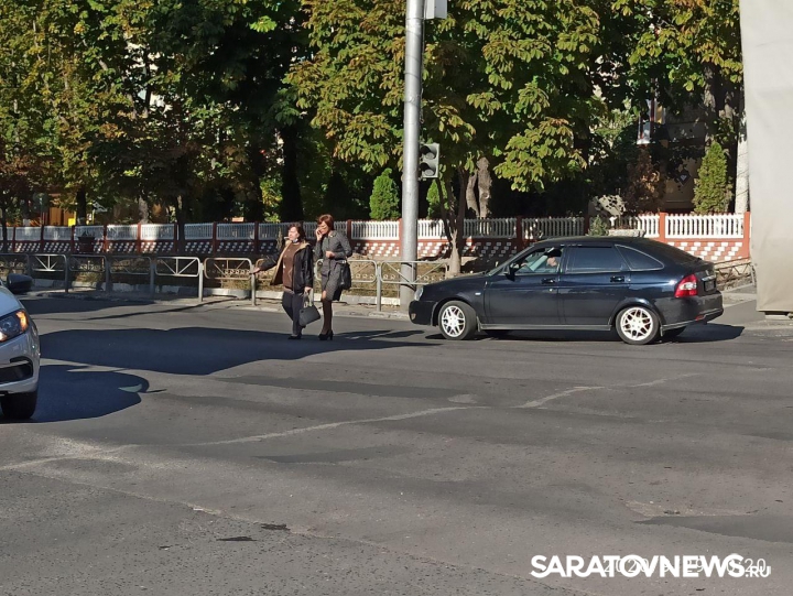 Как передает побывавший на месте корреспондент Saratovnews, перекресток приходится перебегать множеству студентов СГЮА, корпуса которой расположены на данном пересечении улиц.