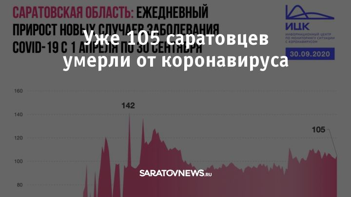 На сегодняшний день, 1 октября, от коронавирусной инфекции умерли уже 105 жителей Саратовской области. Таковы данные, сообщенные оперштабом.
