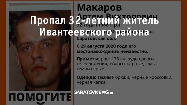 Пропал 32-летний Артем Макаров, житель села Бартеневка. 29 августа 2020 года он ушел из дома и не вернулся.