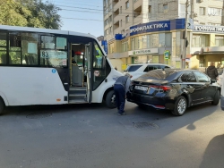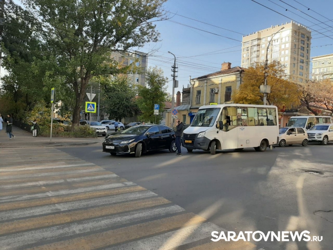 Около часа назад на пересечении улиц Чапаева и Ульяновская столкнулись маршрутное такси №83 и Toyota Camry.