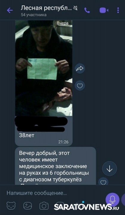 Сегодня, 11 октября, в одной из городских групп Саратова в социальной сети появился тревожный пост: неравнодушие граждане сообщили, что в районе Лесной Республики появился бомж с открытой формой туберкулеза.