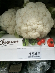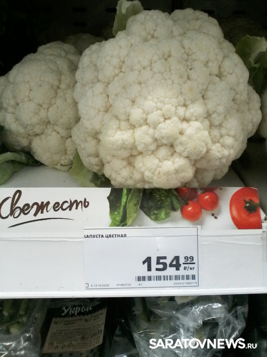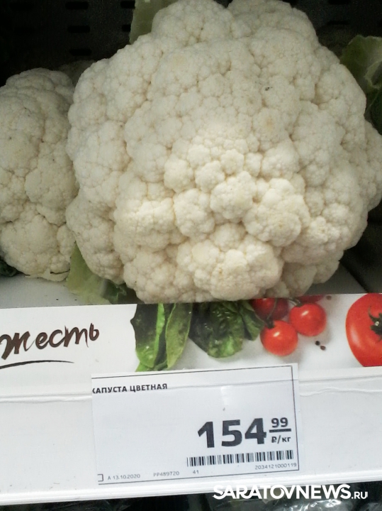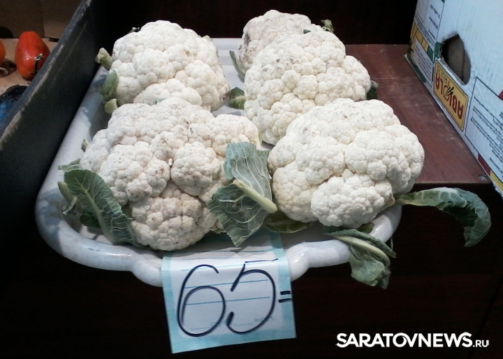 Несмотря на то, что поздними сортами цветной капусты забиты все рынки города Саратова, продуктовые сети и гипермаркеты устанавливают на витаминный овощ свою цену. Которая более чем в два раза превышает рыночную. В середине октября отличился «Магнит», оценив один килограмм цветной капусты в размере 154 рублей 99 копеек. Немного дешевле продает овощи гипермаркета «Ашан» - по 129 рублей 99 копеек за кило. Еще несколько недель назад в сетях можно было встретить капусту стоимостью 90 рулей кило.