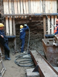 «На сегодняшний день ведутся работы по продавливанию коммуникаций под железнодорожными путями и автостоянкой ТРЦ «HAPPY МОЛЛ». Данный метод представляет собой процесс строительства шахты, при котором разработка грунта, в случае с указанным объектом, ведется ручным способом. То есть подрядной организацией с помощью специального оборудования и инструментов производится строительство туннеля, куда впоследствии продавливается стальная труба, выполняющая роль обсадки. По завершению основных мероприятий выполняется монтаж трубопровода d1000 мм. На сегодняшний день на данном участке проложено 130 м водовода представленным способом» - отметил заместитель директора по капитальному строительству Собур Казакбаев.