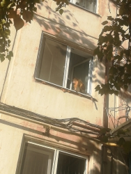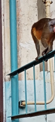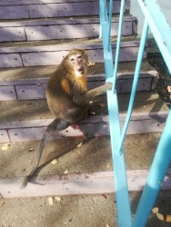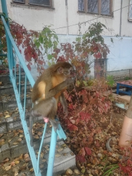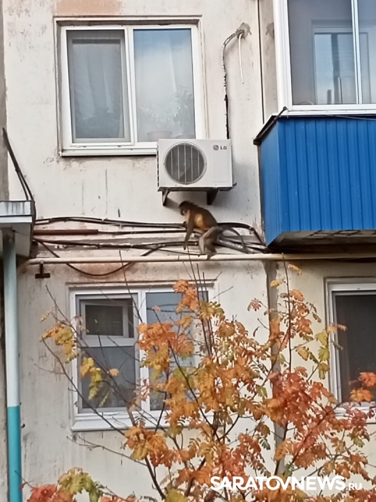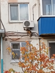 Животное удалось заснять возле дома №42 на Набережной Леонова. Обезьянка лазила по фасаду дома, цеплялась за кондиционеры, прыгала по деревьям и сидела у подъезда.