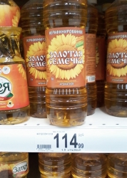 По данным Саратовстата, на 19 октября средняя стоимость 1 литра продукта составила 97 рублей. Однако, согласно мониторингу ИА Saratovnews, на рынках и в магазинах областного центра цена подсолнечного масла гораздо выше, и составляет, в среднем, от 105 до 128 рублей за один литр («Магнит», «Пятерочка», гипермаркета «Ашан»).