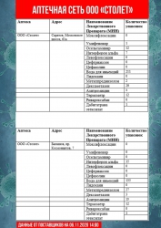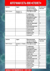 Данные актуальны на 14:00. Гражданам предоставлены адреса, по которым можно приобрести лидокаин, цефазолин, прадакса, азитромицин, цефтриаксон, виферон и другие популярные препараты. Также в списке присутствуют термометры и вода для инъекций.