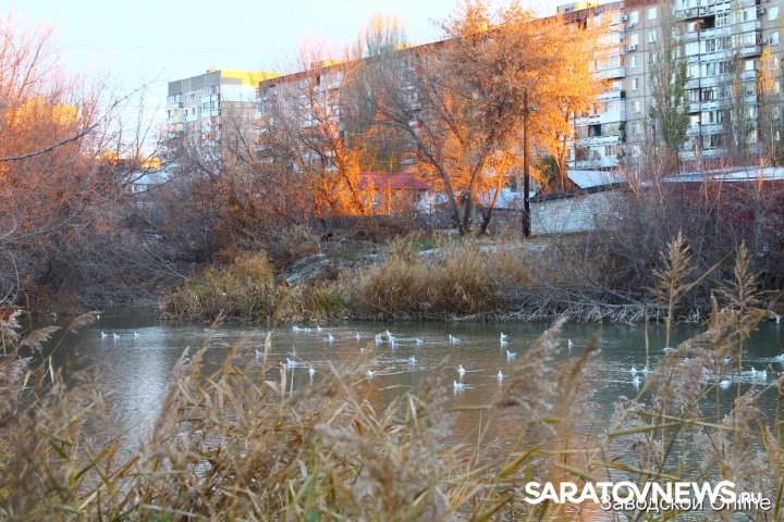 Сегодня, 13 ноября, один из жителей Саратова опубликовал в местном паблике «живописные» фотографии с замусоренного пруда в Заводском районе с плавающими в нем чайками. Горожане сочли зрелище удручающим.