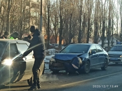 Авария случилась в районе дома № 77 на Политехнической. Столкнулись два автомобиля, марку которых не удалось установить из-аз повреждений. Люди в аварии не пострадали. На месте работает сотрудник ГИБДД.
