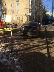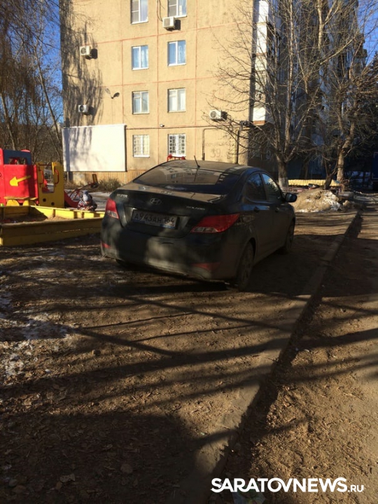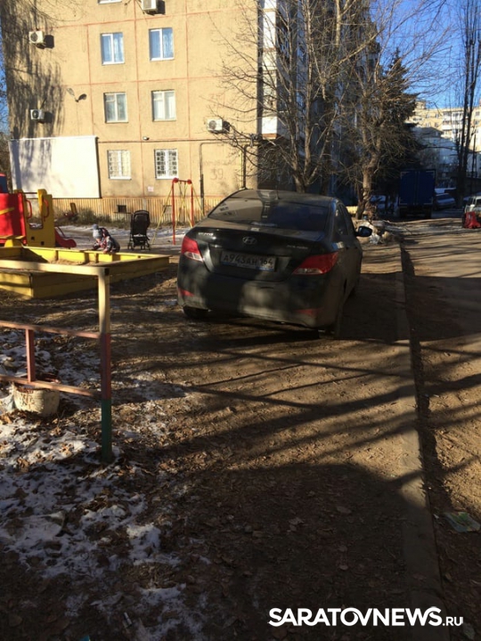 Как сообщает горожанин, выложивший снимки в интернет, сделаны они по адресу: Наумовская, 39. Черный Hyundai с номером А 943 АН 164 определенно нарушил правила парковки, так как пересек бордюрное ограждение и «забрался» на детскую площадку.