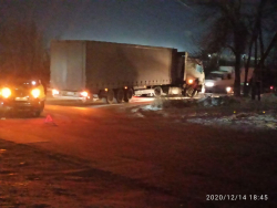 Сегодня вечером, 14 декабря, на Песчано-Уметском тракте в Саратове произошла авария с участием фуры. На месте столкновения сразу образовалась большая пробка. Об этом ИА SaratovNews сообщил очевидец происшествия.