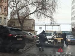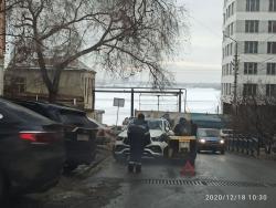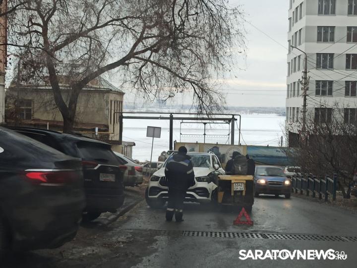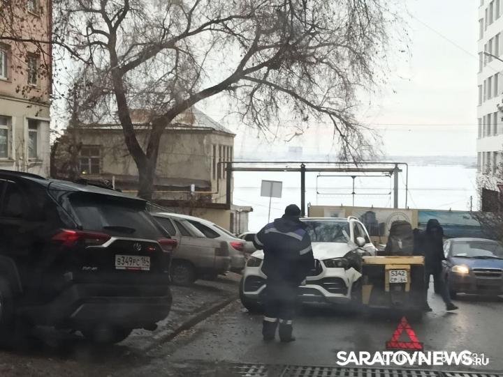 Сегодня, 18 декабря, в Волжском районе Саратова произошло ДТП, которое явно расстроит некого автолюбителя: каток дорожных рабочих повредил Mercedes. Об этом ИА SaratovNews рассказал очевидец.