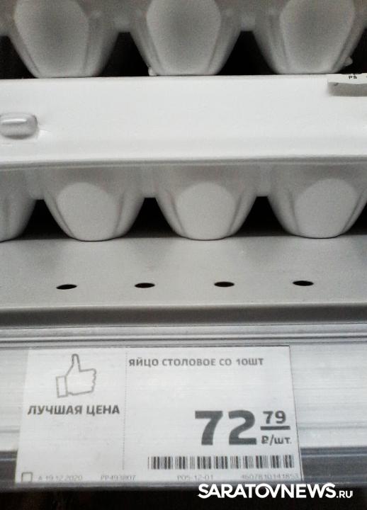 Интересно, что по данным Саратовстата на 14 декабря 2020 года, средняя стоимость куриного яйца составила 65 рублей 98 копеек (на 7 декабря – 62 рубля 45 копеек). То есть, рост цен за неделю – 3 рубля 53 копейки. Правда, и по такой стоимости яйца можно найти или на рынках, либо по акциям в сетевых магазинах.