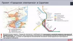 Большое внимание Сергей Альмеев уделил и программе комплексного развития транспортной системы Саратова. Речь идет об интеграции всех видов общественного транспорта на территории областного центра и Энгельса. В планах у Приволжской железной дороги амбициозный проект: соединение Саратова и Энгельса новым образом. Компания ведет разработку маршрутов для электрички выходного дня. Благодаря ее появлению, время пути между городами будет составлять не более: 40 минут в часпик. Также большое внимание уделено направлению на Балаково. В следующем году движение будет реорганизовано таким образом, чтобы составы следовали без пересадок в Сенном, таким образом, время в пути сократится на 40 ― 50 минут.