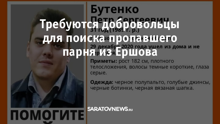 Сегодня, 6 января, волонтеры «Лиза Алерт» обратились к саратовцам за помощью. Для поиска пропавшего жителя Ершова требуются добровольцы.
