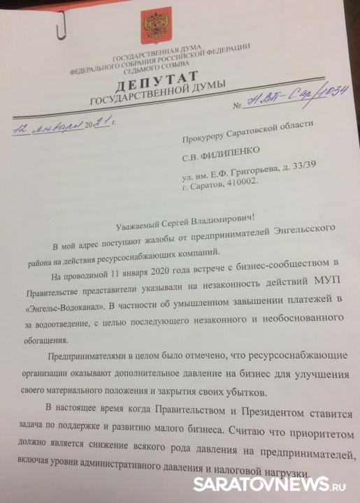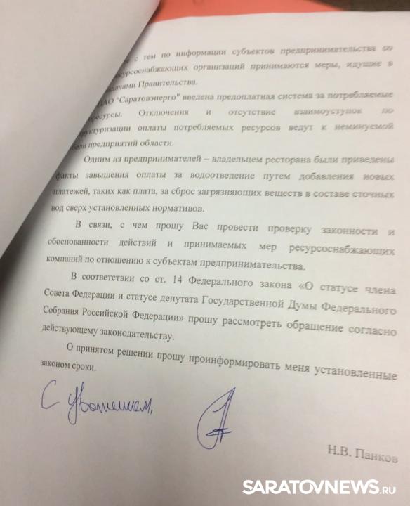 Депутат Государственной Думы Николай Панков в своем телеграм-канале «Пара слов» сообщил, что энгельсские предприниматели жалуются на завышенные тарифы.