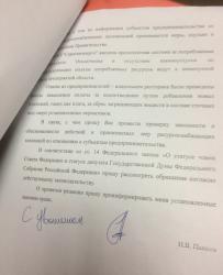 Государство сейчас многое делает, чтобы помочь малому и среднему бизнесу. Чтобы он продолжал работать, пополнять бюджет, сохранял рабочие места. Прошедший год для предпринимателей был сложным. Им сейчас необходимо подставить плечо. А не решать за их счёт чьи-то корыстные вопросы», – пишет Николай Панков.