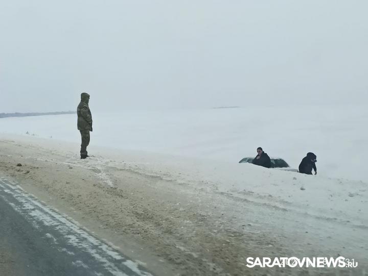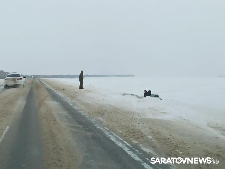 Сегодня утром, 16 января, на трассе Саратов - Уральск произошла авария. Примерно в 60 километрах от Саратова водитель автомобиля KIA не справился с управлением и съехал с дороги в кювет. Так как вокруг шоссе все занесено снегом, автомобиль не перевернулся, а плавно переместился под уклон.