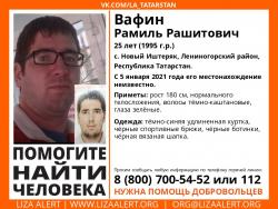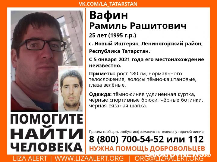 Пропал 25-летний Рамиль Вафин, проживающий в селе Новый Иштеряк Лениногорского района республики Татарстан. 5 января 2021 года он ушел из дома, с тех пор его местонахождение неизвестно.