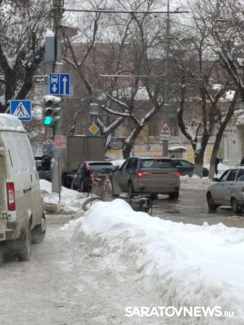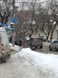 В связи с этим затруднено движение транспорта на участке. Водители притормаживают на дороге, остерегаясь потери управления своих авто. Пешеходам практически невозможно перейти улицы.
