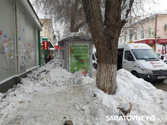 Последствия недавнего снегопада в Саратове ощущаются до сих пор. В редакцию Saratovnews обратилась жительница с жалобой на работу служб благоустройства. Сегодня, 22 января, у остановки транспорта на улице Чернышевского между Соляной и Московской образовались непроходимые завалы. С крыши здания по Соляной, 18 сбрасывали снег прямо на тротуар за павильоном. В результате обойти сугроб можно только по проезжей части, которая вплотную заставлена маршрутками.