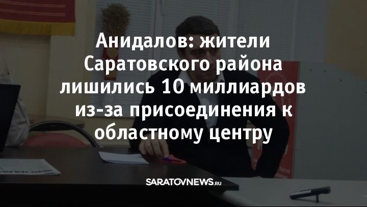 Как сообщил Александр Анидалов, жители Саратовского района получают дезинформацию и не понимают того, чем грозит им объединение с областным центом. "Региональная программа по здравоохранению предполагала выделение 10 миллиардов Саратовскому району. Те населенные пункты, которые были присоединив к Саратову, не смогут на них претендовать и это лишь первый подобный случай".