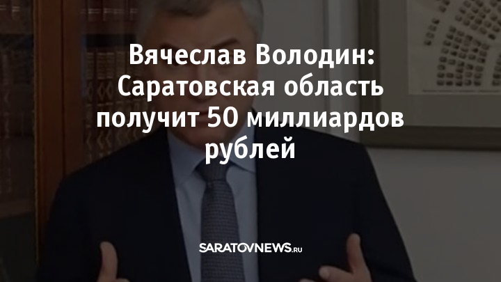 Председатель Государственной думы Вячеслав Володин на своей странице в микроблоге рассказал, что в прошлом году Саратовская область получила порядка 40 миллиардов рублей в виде проектов и инвестиционных программ. А в этом году в регион поступят средства, которые, по словам политика, область раньше не получала – 50 миллиардов рублей.