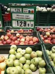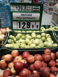 В той же «Пятерочке» яблоки сорта «Гренни смит» можно приобрести за 123 рубля 99 копеек. В гипермаркете «Ашан» сорт «Айдаред» продается по 109 рублей 99 копеек, сорт «Ред делишес» по 129 рублей 99 копеек. По акции фрукты можно приобрести на 15-25 рублей дешевле. На рынках города («Универсальный», Крытый рынок, ТК «На Топольчанской», ТК «Волга») стоимость килограмма яблок, в среднем составляет от 90 до 120 рублей.