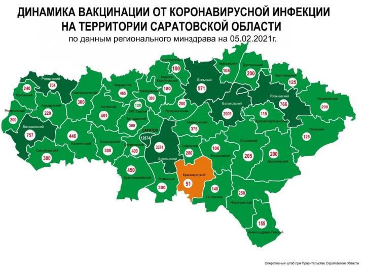 Сегодня, 8 февраля, была опубликована актуальная карта вакцинации Саратовской области от коронавируса. Данные предоставлены региональным минздравом.
