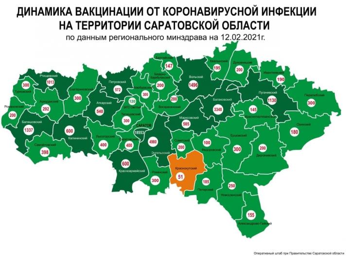 Сегодня, 15 февраля, была опубликована карта вакцинации на территории Саратовской области. Данные предоставлены региональным минздравом.