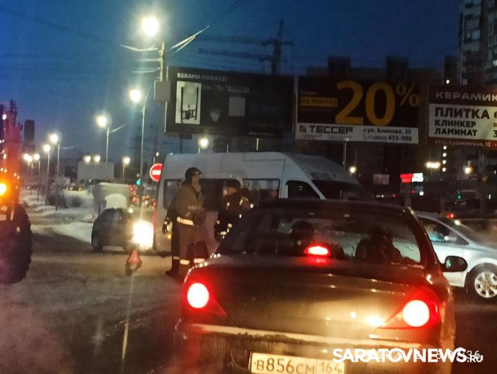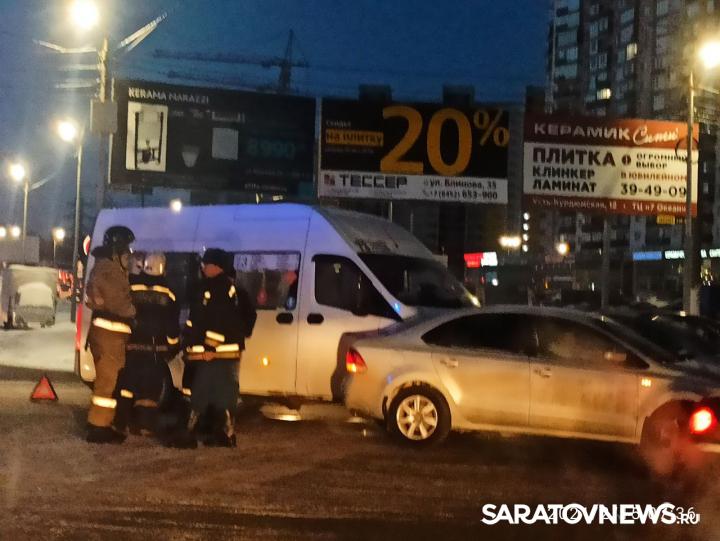 Около часа назад в Солнечном поселке Саратова произошла авария. На перекрестке Днепропетровской и Антонова столкнулись иномарка и пассажирская "Газель". По словам очевидца, на месте затруднено движение, образовалась пробка. Пострадавших нет.