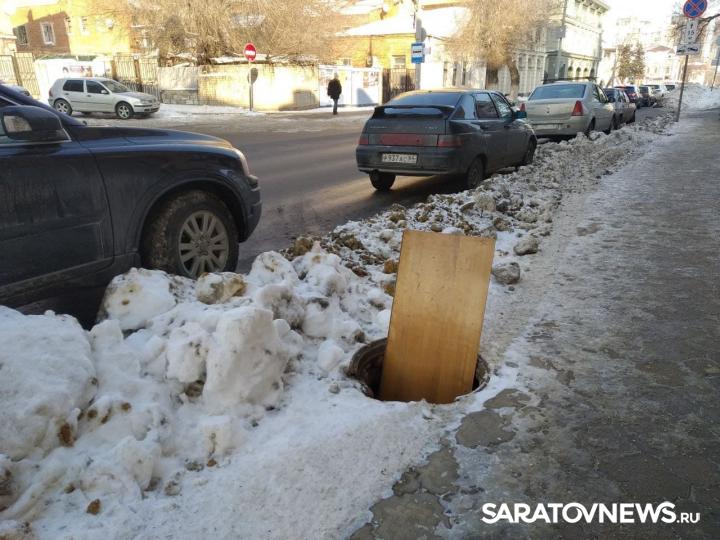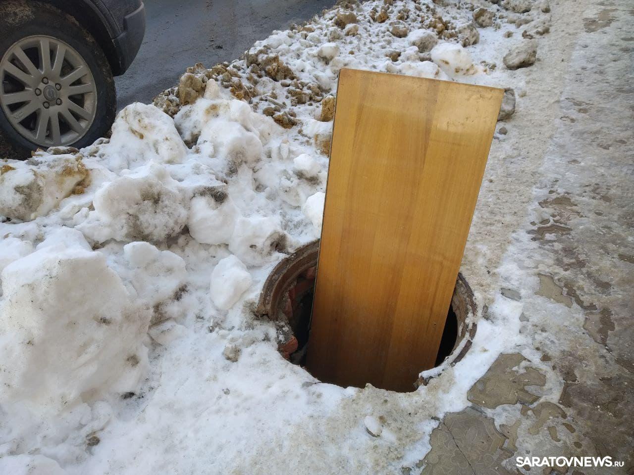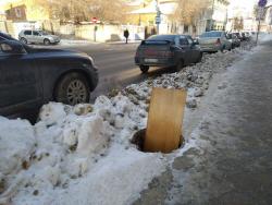 Возле дома 30 «А» по улице Лермонтова со стороны проезжей части открыт смотровой колодец. Люка на нем нет. Видимо, чтобы хоть как-то обратить внимание прохожих на зияющий колодец, в него попросту воткнули деревянную плиту от какой-то мебели.