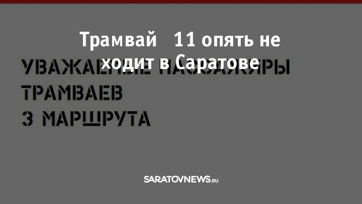 Сегодня, 16 февраля, в Саратове опять возникли нарушения в движении трамвая № 11. Об этом сообщает городской паблик, посвященный электротранспорту.