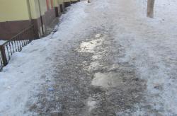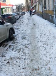 Вторую неделю жители областного центра с трудом передвигаются по улицам. И если возле остановок общественного транспорта дорожные службы немного расчистили и присыпали лед песком, то тротуары представляют собой ледяные катки с тонким слоем снега. Обойти опасные «козьи тропы» по краю проезжей части тоже не получится: вдоль тротуаров сплошь замерзшие сугробы. Причем такая ситуация наблюдается как на центральных улицах города: Мичурина, Посадского, Ульяновской, Некрасова, Чернышевской, и др., так и на окраинах.