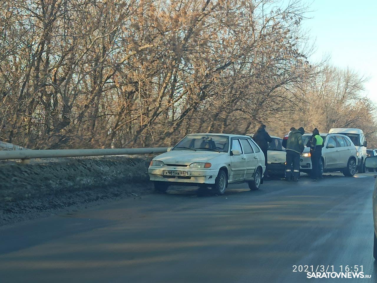 На объездной дороге в Солнечном поселке Саратова столкнулись сразу три автомобиля: ВАЗ-2114, Daewoo Matiz и Volkswagen. В результате ДТП машины заблокировали одну полосу движения. Транспорт объезжает место происшествия по другой полосе по очереди.