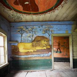 Неизвестный художник по просьбе хозяев расписывает дом изнутри, изображая символы четырех евангелистов (льва, орла, тельца и ангела), чудо о змие, кадку с Неопалимой купиной и святого Трифона с гусями. О мастере мы также ничего не знаем, кроме того, что он был профессионалом – сделанные им пигменты держатся уже больше ста лет, а росписях есть параллели и с иконописью, и с английской живописью XVIII века.