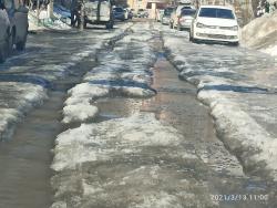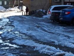 Горожане утверждают, что по адресу Соколовая 61/77 прорвало трубу и уже пять дней течет вода. На предоставленных кадрах видно, что на улицах образовались огромные ледяные торосы, мешающие пешеходам и проезду транспорта.