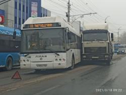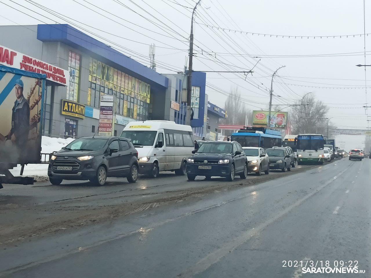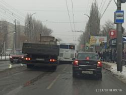 Несколько минут назад в Кировском районе Саратова произошло ДТП. Недалеко от пересечения проспекта 50 лет Октября и улицы Алексеевской столкнулись автобус 11 маршрута и грузовик. На снимках можно увидеть, что они вплотную прижаты друг к другу.