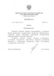 Ректором Саратовского государственного аграрного университета им. Вавилова назначен Дмитрий Соловьев. Соответствующий приказ подписан 19 марта заместителем министра сельского хозяйства РФ.