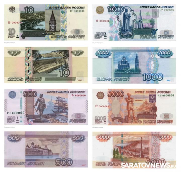 На снимке представлены банкноты, выпуск которых будет прекращен в ближайшие годы. 1 000 и 5 000 обновят в 2023 году. На них появятся изображения Нижнего Новгорода и Екатеринбурга. 500 рублей поменяют в 2024, там будет Пятигорск, а 10 рублей в 2025: изобразят Новосибирск. Таким образом на банкнотах будут достопримечательности из всех федеральных округов.